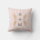 Add a touch of personalized elegance to any room with this beautiful, customizable throw pillow. Featuring a soft blush pink and white vertical striped background, the design highlights your chosen initials within an elegant gold botanical wreath motif. This versatile accent piece is perfect for a newlywed couple's first home, a thoughtful anniversary present, or simply to add a personalized flair to your own living space or bedroom.