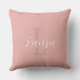 Simples e único moderno blush rosa empoeirado monograma e nome personalizado almofada com uma assinatura branca chic script.