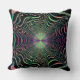 travesseiro decorativo de 20" x 20" com imagem de um fractal de ondas vibrantes a preto. Preto para trás. Veja toda a coleção de Travesseiros Psychedelic 60s no DECOR | Seção Travesseiros.