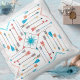 Este padrão de travesseiro decorativo inspirado no asteca tem uma vibração Chic Boho com um arranjo geométrico de setas de aquarelas em volta de uma forma solar brilhante. Esta versão quadrada colorida tem um esquema de cores mais tradicional do sudoeste que inclui turquesa brilhante e coral na cor de fundo de sua escolha (o branco mostrado aqui é opcional). Procure ID748 para ver outras opções de cores e produtos com este padrão.