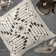 Este padrão de travesseiro decorativo inspirado no asteca tem uma vibração Chic Boho com um arranjo geométrico de setas à volta de uma forma brilhante de sol. Esta versão quadrada moderna tem um esquema simples de cor preta sobre a cor de fundo de sua escolha (a cor esbranquiçada mostrada aqui é opcional). Procure ID748 para ver outras opções de cores e produtos com este padrão.
