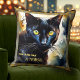 Travesseiro artístico boho com uma pintura aquosa de um gato preto giro com seus próprios textos engraçados (ou outros).