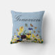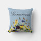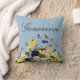 Almofada personalizável elegante Boho com pensejos coloridos de primavera, narcisos e borboletas em um fundo azul pálido vintage vitoriano.
