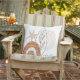Estrelas bóquicas da lua quica arco-íris flores da linha em cores neutras de bege, bronzeado, rosa, ferrugem. Uma forma perfeita de adicionar uma música 'boho' sem esforço a um quintal, pátio, balcão, interior ou exterior. A parte traseira do travesseiro é uma cor neutra sólida.