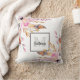 Um fundo branco-quic com flores, rosas, prigos e penas de ouro cor-de-rosa. Summer Boho, estilo boêmico. Uma cinza e quadro branco com espaço para seu nome e letra monográfica. O nome é escrito em preto com um moderno estilo escrito à mão. Letra monograma na cinza.
