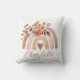 Um travesseiro de berçário do estilo 'bô' e terracotta arco-íris com nome de bebê. Arco-íris floral.