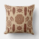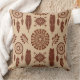 Um travesseiro decorativo de padrão, inspirado por tribais e sem descontinuidades, com penas, rajadas geométricas de sol e motivos circulares em tons quentes de castanho e bege. Perfeito para decoração rústica em casa, presentes boêmicos, e designs criativos em todas as épocas.
