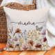 Boho Wildflower Mama Travesseiro decorativo. Adicione um sotaque confortável e na moda a qualquer espaço com este travesseiro decorativo, apresentando uma delicada borda inferior de flores silvestres boho em ferrugem quente, terracota, laranja queimada, bronzeado e verde-sábio. O moderno roteiro da "mãe" acrescenta um toque sincero, fazer-o a peça perfeita para um berçário, sala de estar ou anzol de leitura. Quer seja uma renovação de primavera, um retiro de verão, uma adição de outono aconchegante, ou um sotaque de inverno quente, este travesseiro é uma bela maneira de celebrar a maternidade. Personalize o seu hoje!