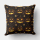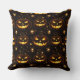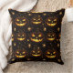 A glowing bokeh-style Halloween seamless pattern throw pillow featuring illuminated jack-o’-lanterns surrounded by swirling vines and sparkling stars. The soft bokeh lighting adds depth and warmth, highlighting the eerie yet festive glow of the pumpkins against a dark, moody background. Ideal for Halloween-themed projects, seasonal home decor, digital designs, and autumn-inspired creative works that evoke the magic of October nights.