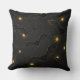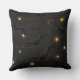 A bokeh-style Halloween seamless pattern throw pillow featuring black bats flying across a dark night sky filled with golden orbs and sparkles. The soft bokeh lighting creates a moody, mystical atmosphere that blends spooky and elegant aesthetics.