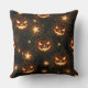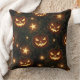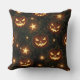A glowing bokeh-style Halloween seamless pattern throw pillow featuring illuminated jack-o’-lanterns surrounded by swirling vines and sparkling stars. The soft bokeh lighting adds depth and warmth, highlighting the eerie yet festive glow of the pumpkins against a dark, moody background. Ideal for Halloween-themed projects, seasonal home decor, digital designs, and autumn-inspired creative works that evoke the magic of October nights.
