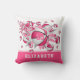 O travesseiro decorativo de basquete desta menina legal apresenta uma "explosão" de esferas de basquete de tamanho variado com painéis cor-de-rosa e brancos e cor-de-rosa, cinzas e formas de estrelas brancas - personalize com o nome do atleta, monograma e número de camisa na frente e no verso - katz_d_zynes
