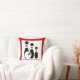 travesseiro decorativo de bola de boliche e pinos que exibe um ícone minimalista de três pinos pretos de boliche com faixas vermelhas, uma bola e seu texto sobre fundo branco com borda vermelha. Personalize-o e altere o texto com monograma, nome ou mensagem. As ideias perfeitas para o jogador fanático e o amante das boliches.