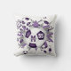 O travesseiro decorativo de futebol desta desportista apresenta uma "explosão" de esferas e cinzas de futebol de dimensão variada, em forma de estrela roxa e branca - os painéis normalmente pretos das bolas de futebol foram recoloridos roxos - personalizados com o nome, o monograma e o número de camisolas do atleta - katz_d_zynes