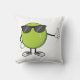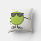 Uma bola do tênis vestiu-se para o sol que veste óculos de sol. Este design olha realmente eficaz neste travesseiro decorativo