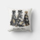 Travesseiro decorativo decorativo com árvores de Natal pretas e douradas, padrão de xadrez de búfalos, arcos festivos e texto personalizado de feriado
