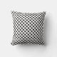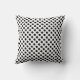 Travesseiro decorativo com padrão de bolinhas preto e branco.