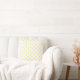 Bolinhas clara amarela e branca em um Travesseiro.