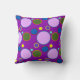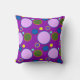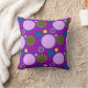 Círculos, manchas e bolinhas brancas adoram este travesseiro decorativo. Círculos cor-de-rosa brilhantes sobre fundo roxo adicionarão cor e diversão a qualquer decoração caseira.