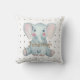 Bolinhas de elefantes fofinhos, travesseiro decorativo azul.