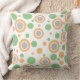 Padrão dos círculos geométricos com laranja claro e bolinhas verdes de sábio contra branco nítido na frente. A parte de trás é cor laranja clara sólida. Trendy moderna decoração doméstica. Designs originais por TamiraZDesign.