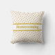 Travesseiro decorativo com belas bolinhas metálicas douradas sobre fundo branco. O regresso a casa pode ser personalizado. Casa e família são o nosso verdadeiro tesouro!