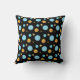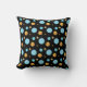 Belo travesseiro decorativo com bolinhas de ouro e turquesa em fundo preto.