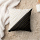 Travesseiro decorativo chic com belas bolinhas metálicas douradas sobre fundo preto e branco. Ideal para decoração moderna.