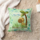 Travesseiro de boas-vindas para bebês é um tema da selva com bolinhas em verde e azul pastel. Garota doce e Palma de Coco para um tema de berçário contemporâneo e fofo. Personalize com o nome do bebê e a data de nascimento.
