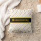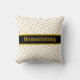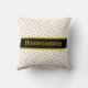 Travesseiro decorativo chic com belas bolinhas metálicas douradas sobre fundo preto e branco. O regresso a casa pode ser personalizado. Casa e família são o nosso verdadeiro tesouro!
