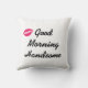 Os lábios cor-de-rosa brilhantes e o "bom dia consideráveis" decoram este travesseiro branco, fazendo lhe o acento perfeito para o quarto ou um presente bonito para ele no dia dos namorados ou no seu aniversário.