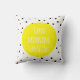 Travesseiro branco com padrão de pontos preto e branco e tipografia escrita à mão. Outras cores e citações estão disponíveis na minha loja.