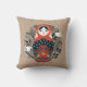 Um travesseiro decorativo de matryoshka para adicionar ao seu Natal. A parte de trás do travesseiro tem um padrão de pomba preto e branco. Projetado para você pelo Blackberry Boulevard.