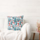 Neves bonitos e confortáveis em lenços vermelhos quentes e chapéus quentes de tricô e um bonito travesseiro decorativo de fundo de pinheiro verde, vermelho e azul.