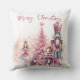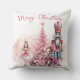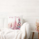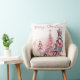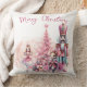 Este travesseiro decorativo personalizado apresenta um tema de Natal bonito, rosa, do Nutcracker, sobre um fundo branco comum. Os caracteres da história do Nutcracker são fotografados em torno de uma árvore de Natal cor-de-rosa. A bailarina da Fada de Açúcar é fotografada à esquerda, e o gigante Nutcracker e Mouse King são fotografados à direita. Uma saudação de "Feliz Natal" é impressa acima da ilustração que você pode personalizar para incluir sua própria saudação, nome personalizado ou outro texto.