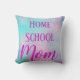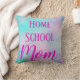 Um bonito design, este travesseiro cor-de-rosa e azul é perfeito para a mãe da escola. Apresentando um plano de fundo azul e cor-de-rosa com texto roxo mostrando "Home School Mãe", compre seu travesseiro hoje!