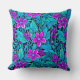 Bonito padrão elegante de flores roxas, azuis, lacustres, turquesas e verdes e travesseiro decorativo foliar.