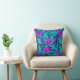 Bonito padrão elegante de flores roxas, azuis, lacustres, turquesas e verdes e travesseiro decorativo foliar.