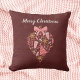Bonito Vinho Champagne Rosa Feliz Travesseiro decorativo de Natal Feliz. Uma bela design de um ornamento com torcida, árvores, e arcos todos em um fundo burgundy. Edite facilmente com sua saudação na frente e atrás.