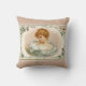 Um retrato de uma Bonito vitoriana vestindo um vestido azul macio cercado por flores delicadas. Imagem de um Cartão de Comércio Vitoriano em fundo bege.