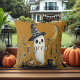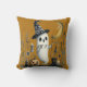 Um travesseiro decorativo que combina com a grandiosidade e a inquietação do Halloween. A trabalho de arte apresenta o fantasma do Halloween, o bonitinho e assustador gueto do fantasma. O texto pode ser facilmente personalizado com suas próprias palavras.