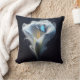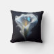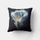 Delicar linhas brancas de uma flor de lírio calla floresce graciosamente em torno de um estame de laranja central com uma borboleta Morpho Comum Azul
