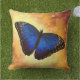 Belo travesseiro do pátio da borboleta azul ao ar livre.