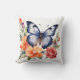 Almofada Borboleta de Aquarela Azul Florais Vermelhos e Pês