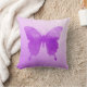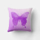 Uma borboleta grande, de cor d'água em tons de violeta violeta profundo a suave em um travesseiro decorativo de fundo violeta pastel/gradiente de lavanda