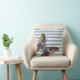Travesseiro decorativo moderno para o entusiasta da natureza. Tendy Blue and White stripes na frente e atrás, com uma borboleta colorida pintada "off-centered" na frente do travesseiro.