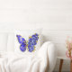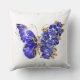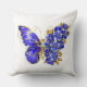 Borboleta de flores cinza, azul, safira, espumante com asa decorada com flores preciosos azuis com folhas de ouro sobre fundo branco.