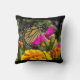 Borboleta Monarch num travesseiro decorativo de flor rosa-marigold. Uma bela fotografia de naturezas. As borboletas representam renascimento, natureza, Primavera. Foto Copyright de Debra Carr