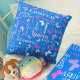Pequenas borboletas gráficas bonitas, borboletas personalizadas, travesseiro de nomes. Este travesseiro tipográfico de texto azul-céu, azul-claro, rosa, roxo, mauve, branco e creme também pode ser personalizado com seu próprio nome, atualmente lê Lauren. O cobertor de correspondência está disponível e outros nomes e cores disponíveis ou você pode entrar em contato comigo para obter solicitações de cores e nomes. Arte gráfica original e design por Sarah Trett para www.mylittleeden.com