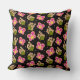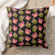 Travesseiro decorativo com borboletas e padrão de flores sobre fundo preto